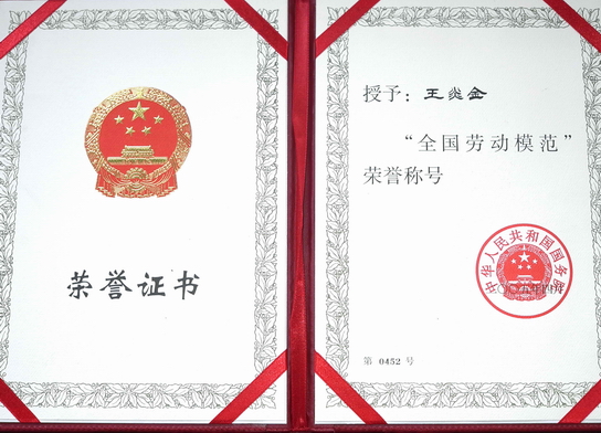 董事長(cháng)王炎金先生榮獲全國勞動(dòng)模范榮譽(yù)稱(chēng)號:見(jiàn)圖2